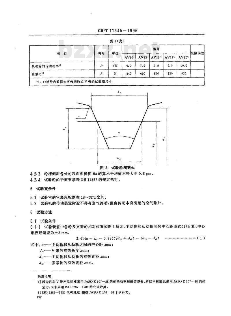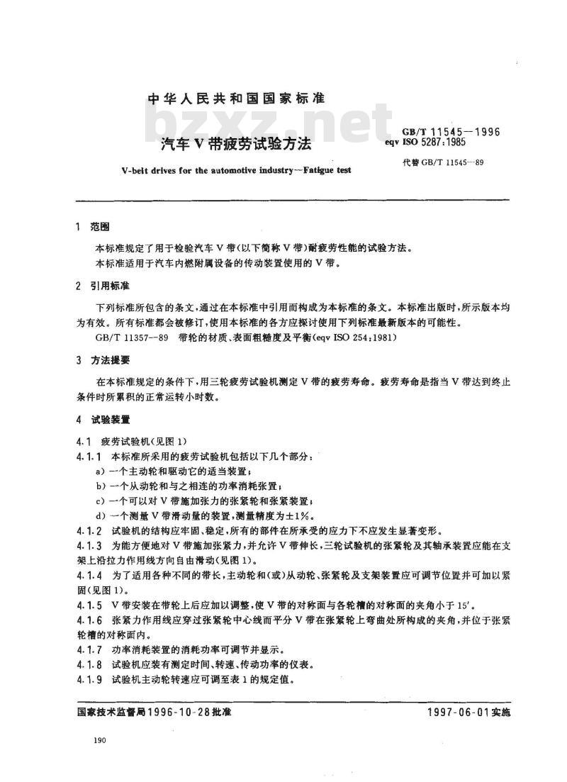 - GB/T 11545-1996 汽车V带疲劳试验方法