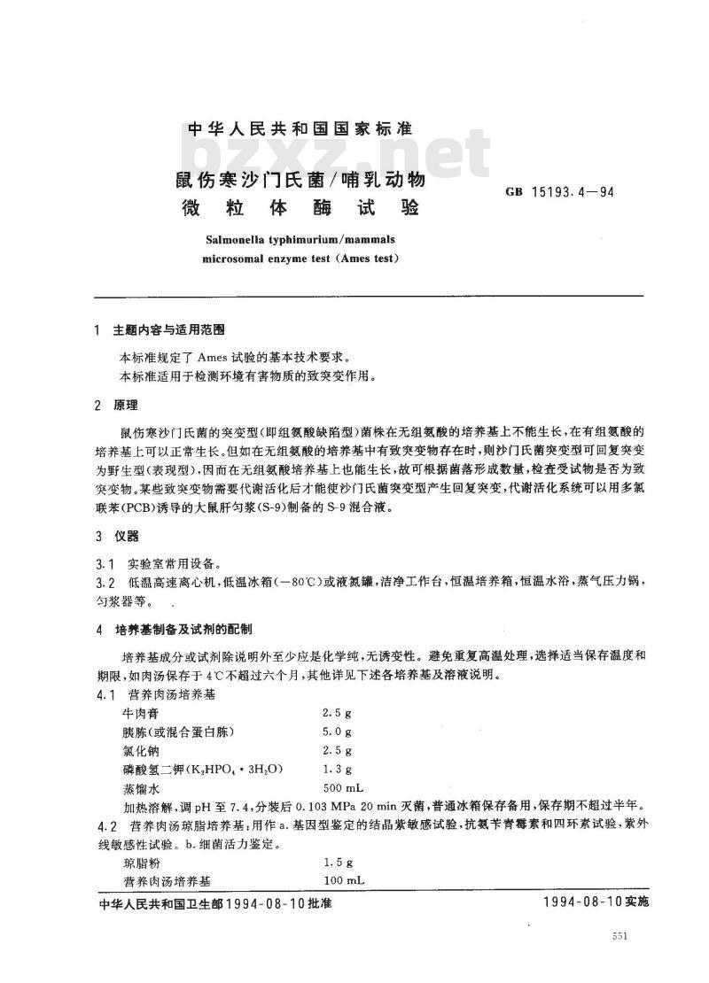 - GB 15193.4-1994 鼠伤寒沙门氏菌/哺乳动物微粒体酶试验