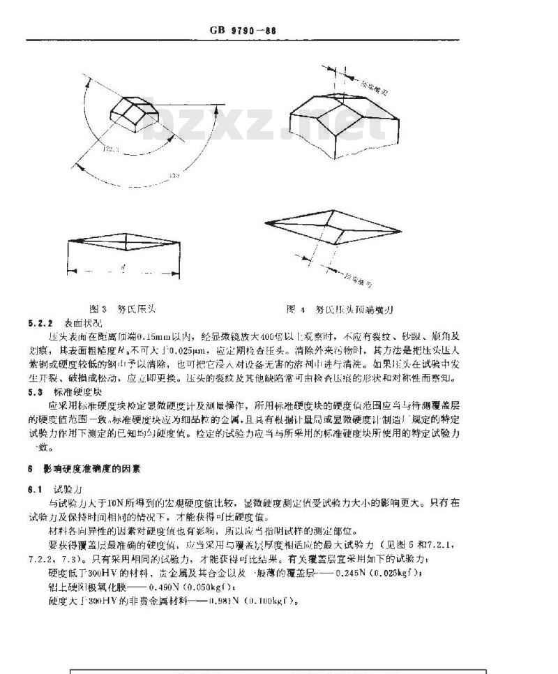 压痕的人小和形状受覆盖层近处其他材料的影响。例如,如果压接近基体,而基体又比覆盖层软时,则获得的硬度值可能偏低。如果压痕出现不正常的影状,说明有这种原因的误差(见7.2.1,7.2,3及7,3)。