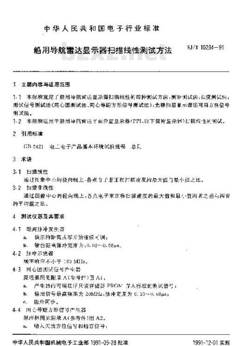 - SJ/T 10294-1991 船用导航雷达显示器扫描线性测试方法
