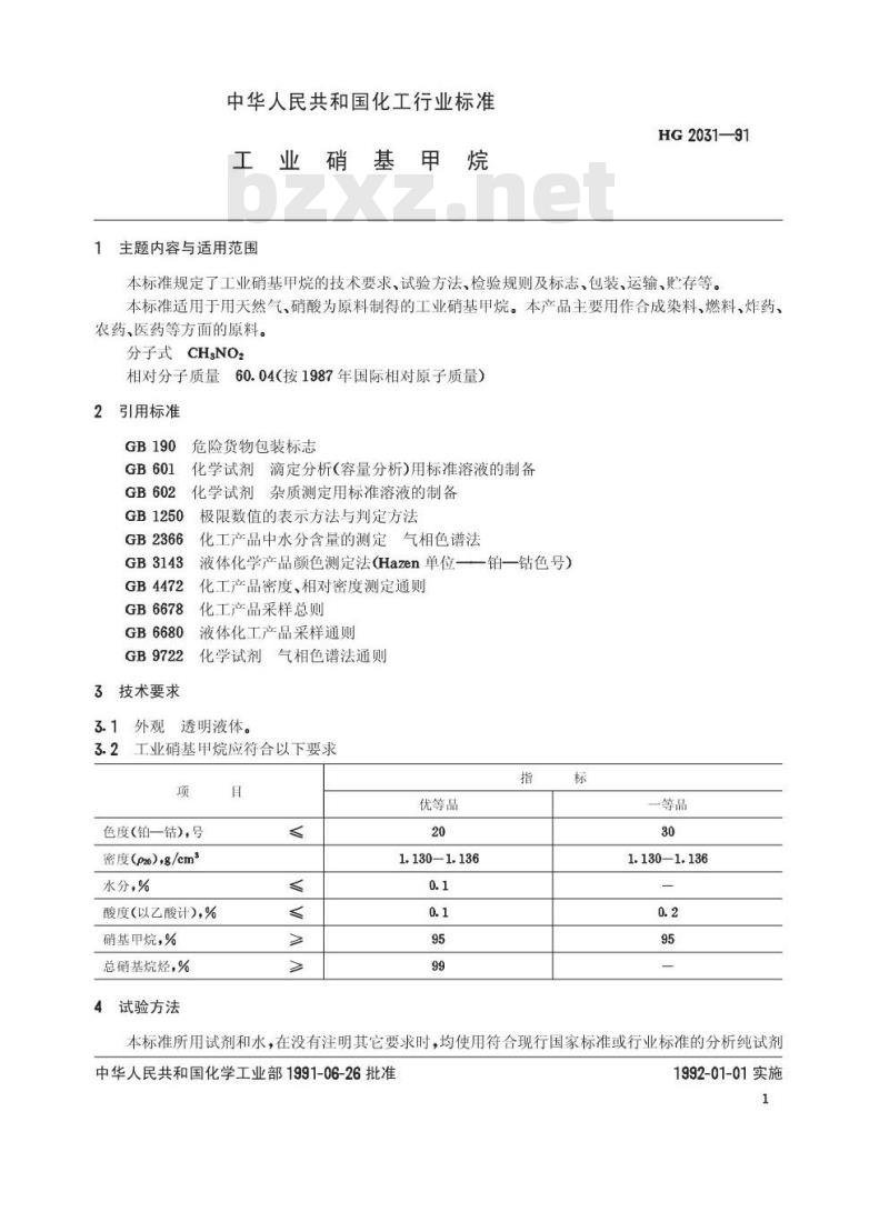 本标准规定了工业硝基甲烷的技术要求、试验方法、检验规则及标志、包装、运输、贮存等。本标准适用于用天然气、硝酸为原料制得的工业硝基甲烷。本产品主要用作合成染料、燃料、炸药农药、医药等方面的原料。