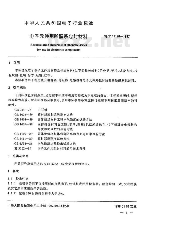 - SJ/T 11126-1997 电子器件用酚醛系包封材料