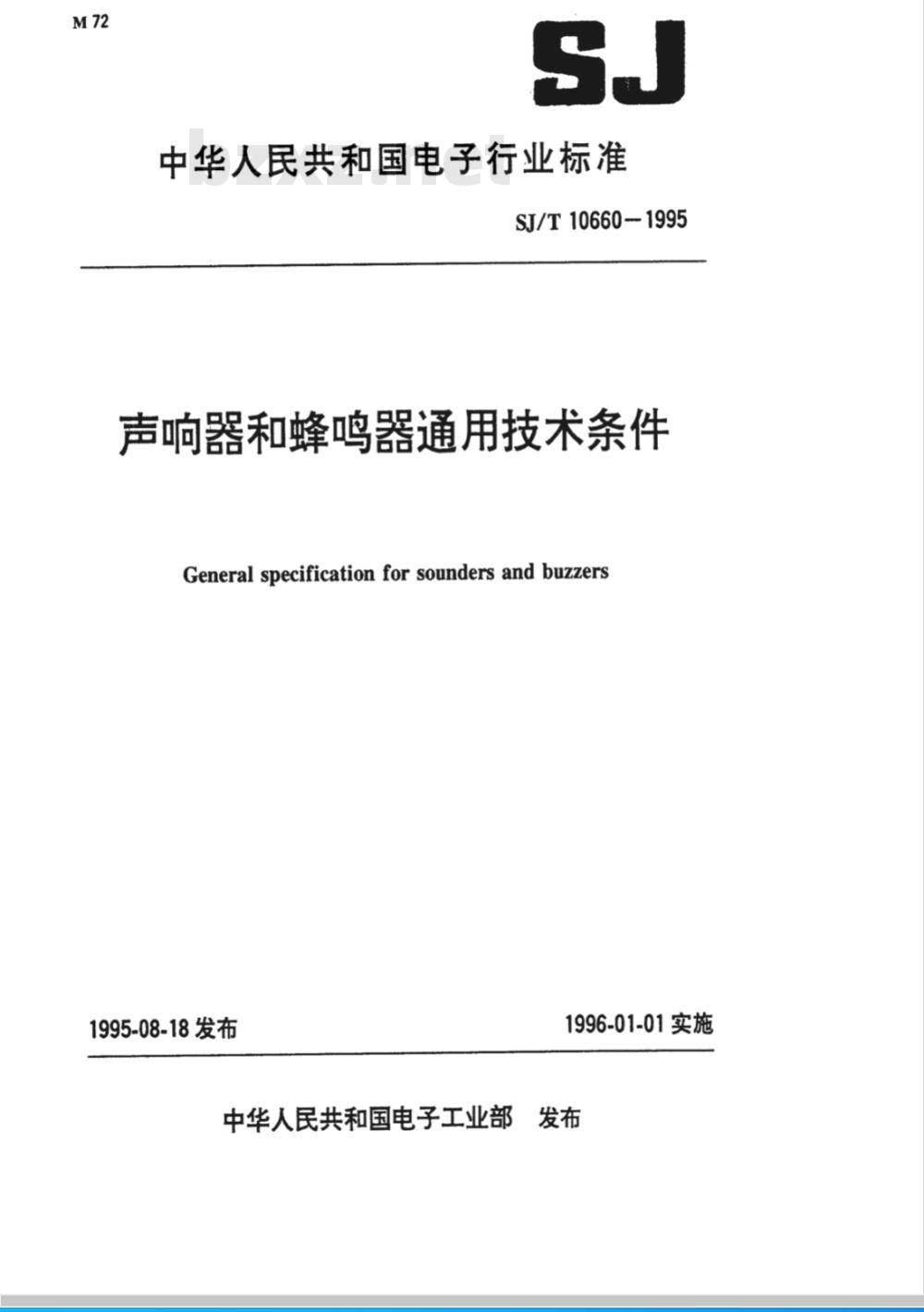 - SJ/T 10660-1995 声响器和蜂鸣器通用技术条件