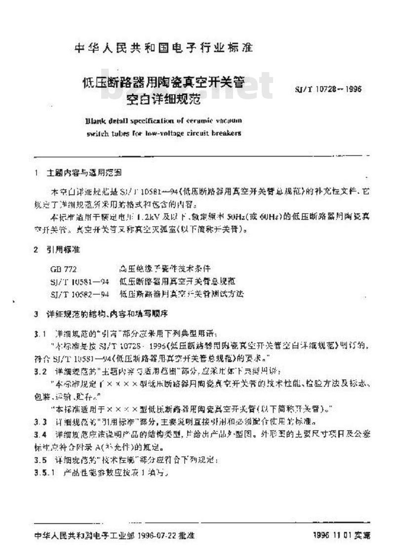 - SJ/T 10728-1996 低压断路器用陶瓷真空形状管空白详细规范