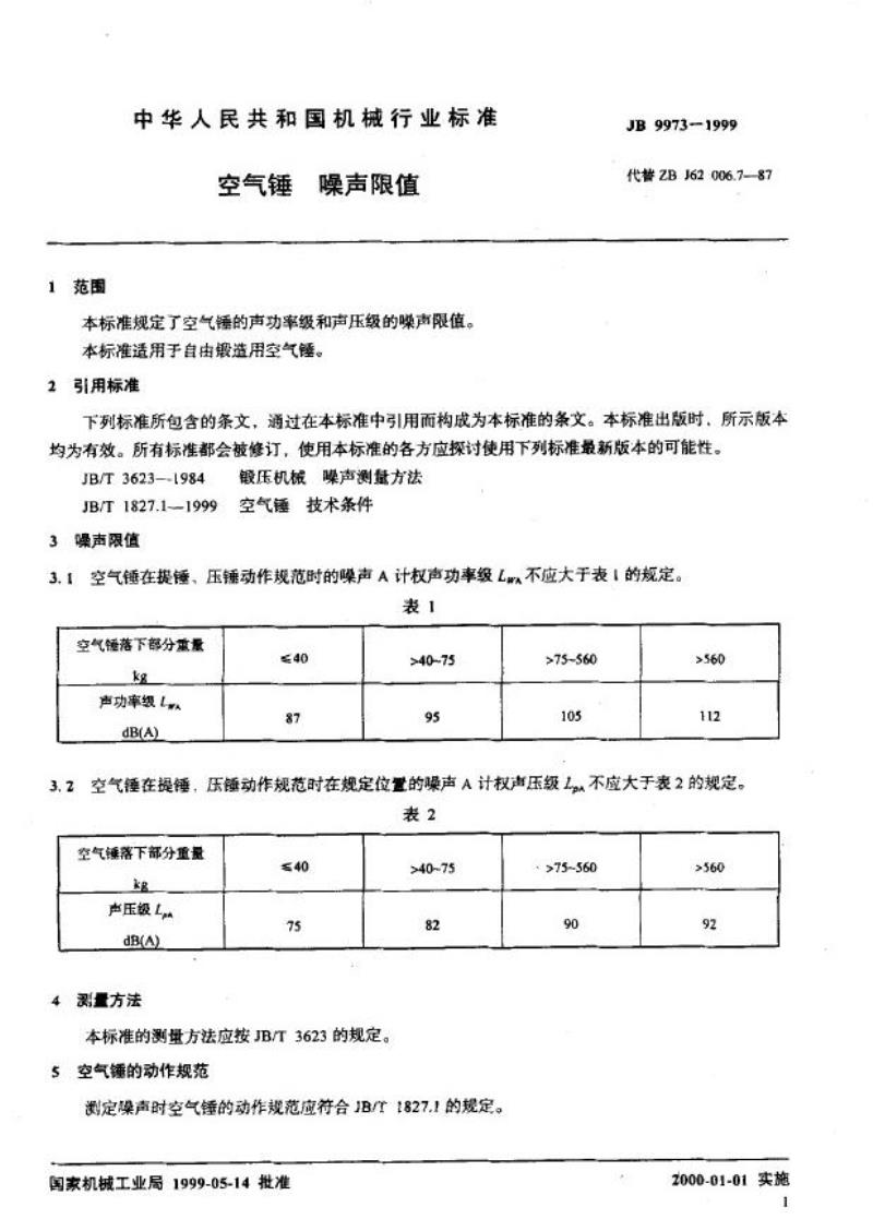 - JB 9973-1999 空气锤 噪声限值
