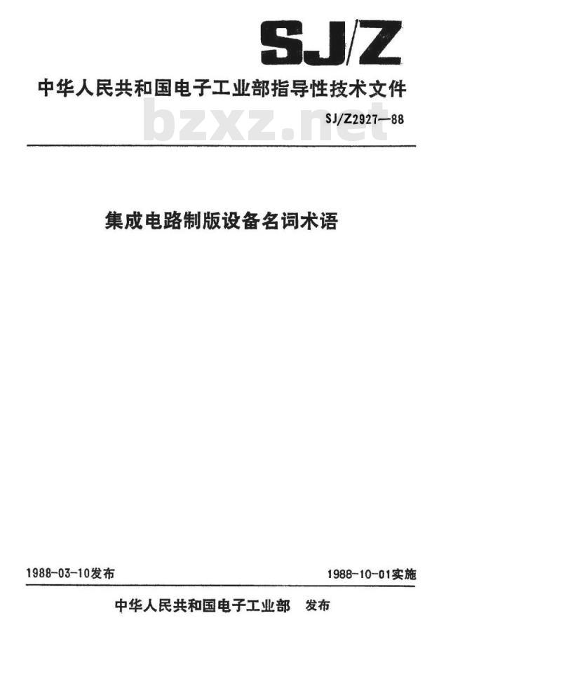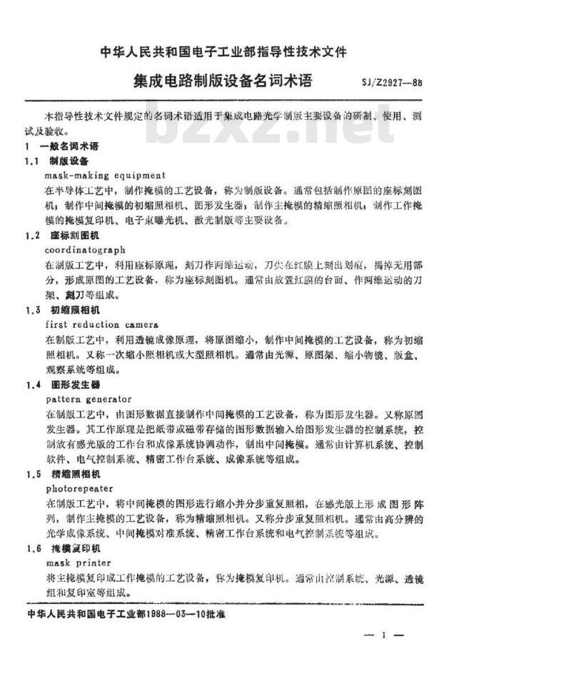 - SJ/Z 2927-1988 集成电路制版设备名词术语