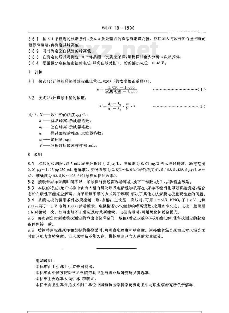 - WS/T 19-1996 尿中铅的微分电位溶出测定方法