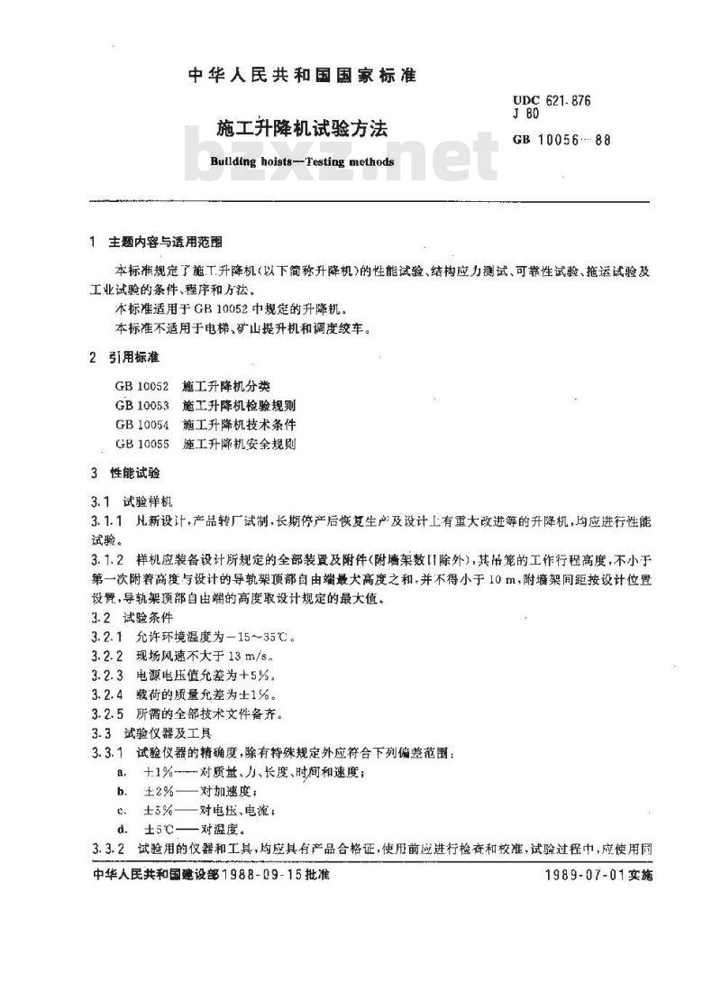 Bullding hoists--Testing nmethods1主题内容与适用范Www.bzxZ.net