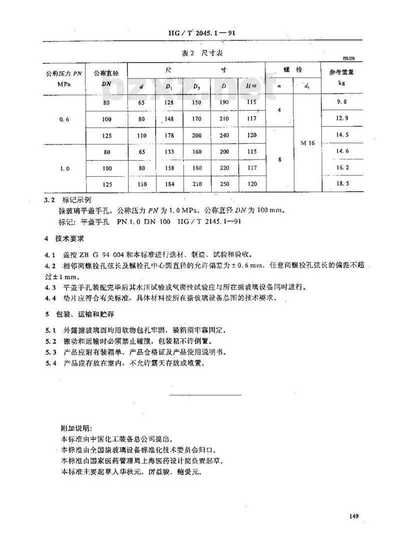 - HG/T 2145.1-1991 搪玻璃手孔 平盖手孔