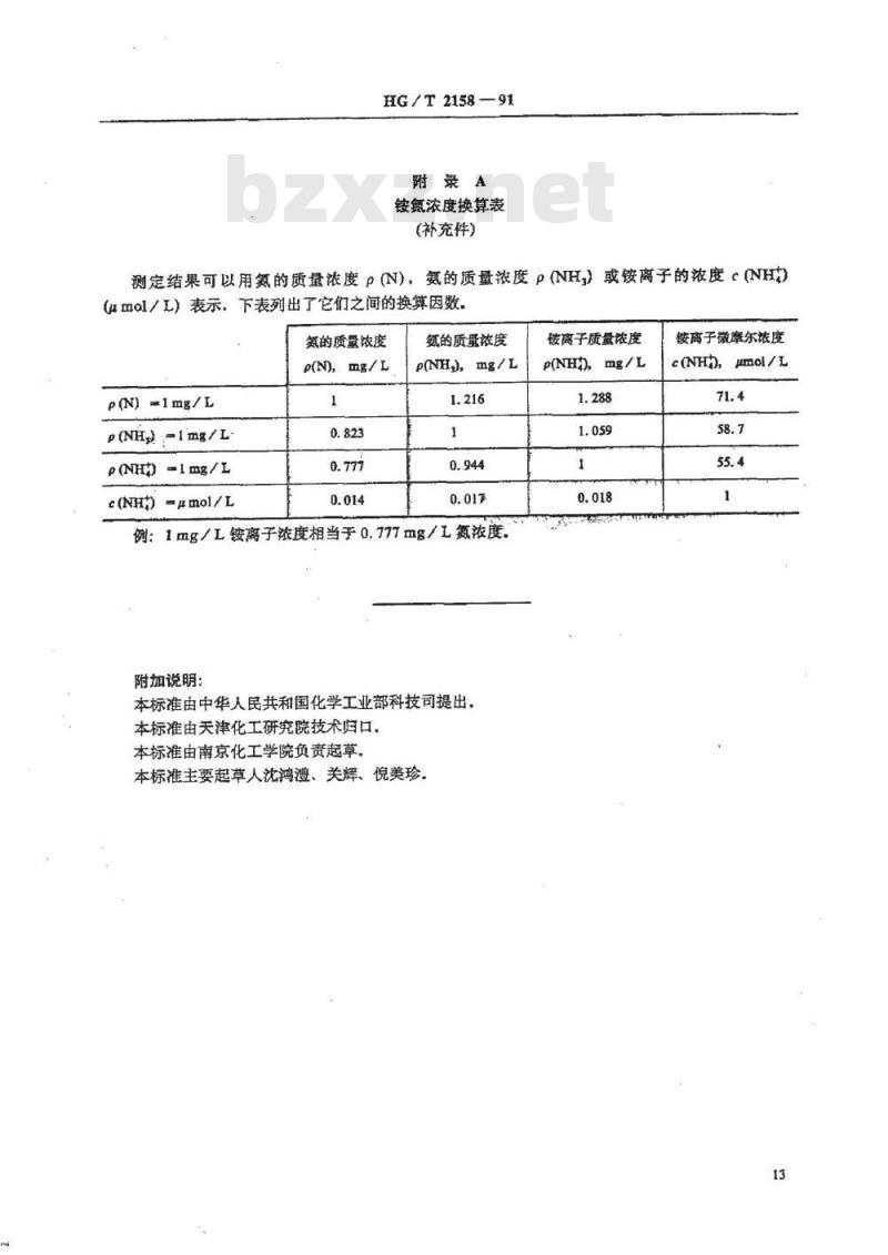 例:1mg/L铵离子浓度相当于0.777mg/L氮浓度附加说明:
