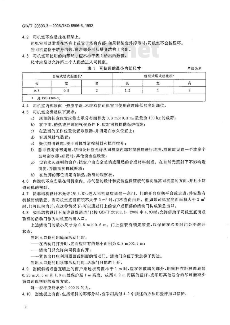- GB/T 20303.3-2006 起重机 司机室 第3部分:塔式起重机