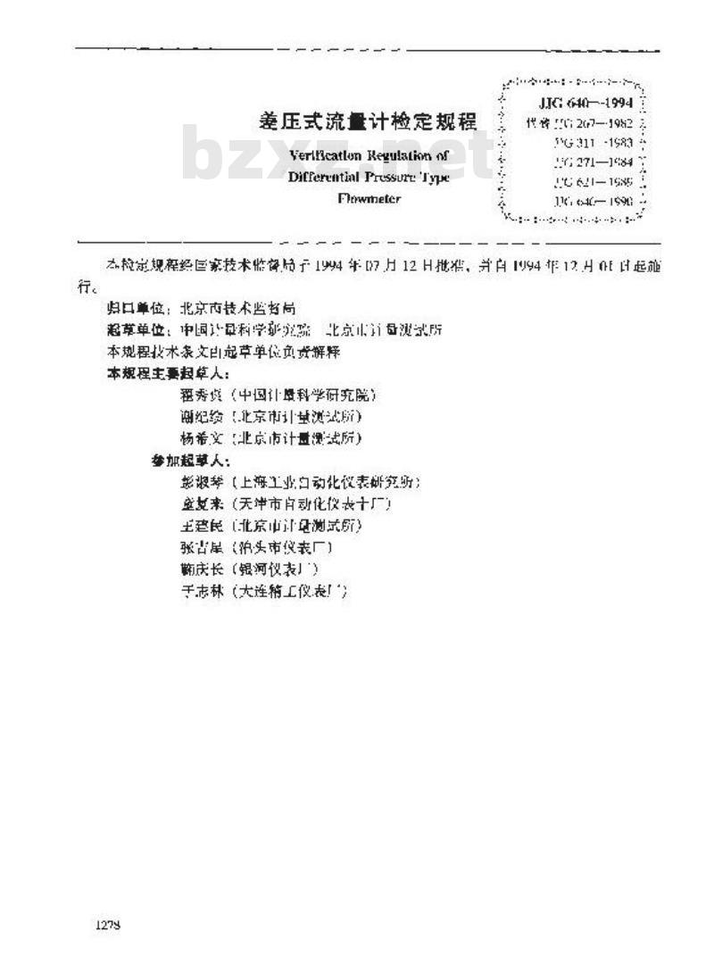 JJG 640-1994 差压式流量计检定规程 JJG640-1994