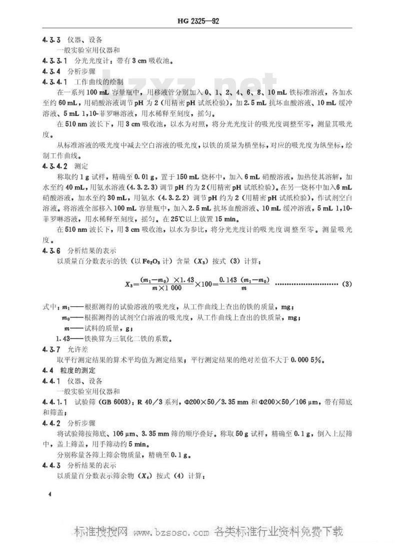 以质量百分数表示的铁(以Fe2Os计)含量(X:)按式(3)计算:(m1-mo)X1.43×100