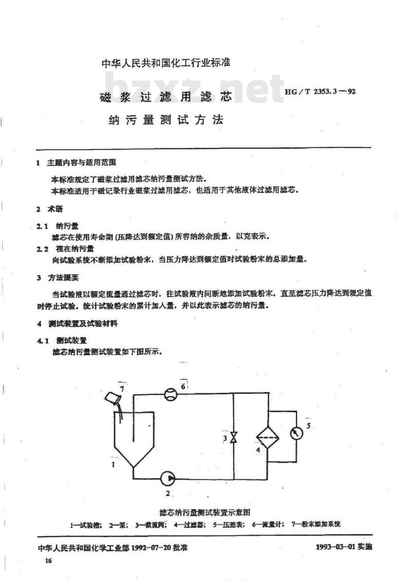 - HG/T 2353.3-1992 磁浆过滤用滤芯 纳污量测试方法