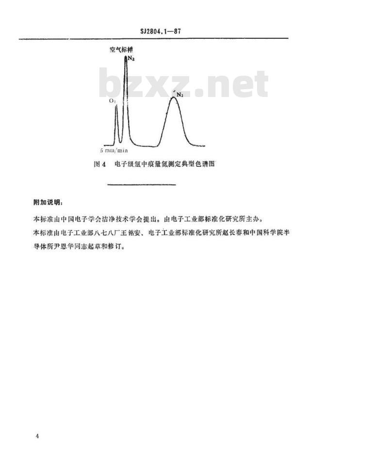 电子级氩中痕量氮测定典型色谱图本标准由中国电子学会洁净技术学会提出。由电子工业部标准化研究所主办。本标准出电子工业部八七八厂王铭安、电子工业部标准化研究所赵长春和中国科学院半导体所尹恩华同志起草和修订。4