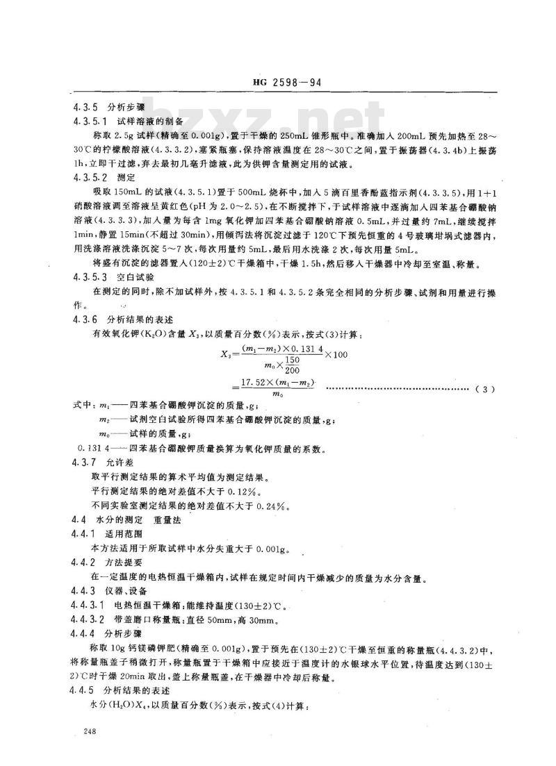 取平行测定结果的算术平均值为测定结果。平行测定结果的绝对差值不大于0.20%。不同实验室测定结果的绝对差值不大于0.30%。4.3有效氧化钾含量的测定四苯基合硼酸钾重量法4.3.1适用范围