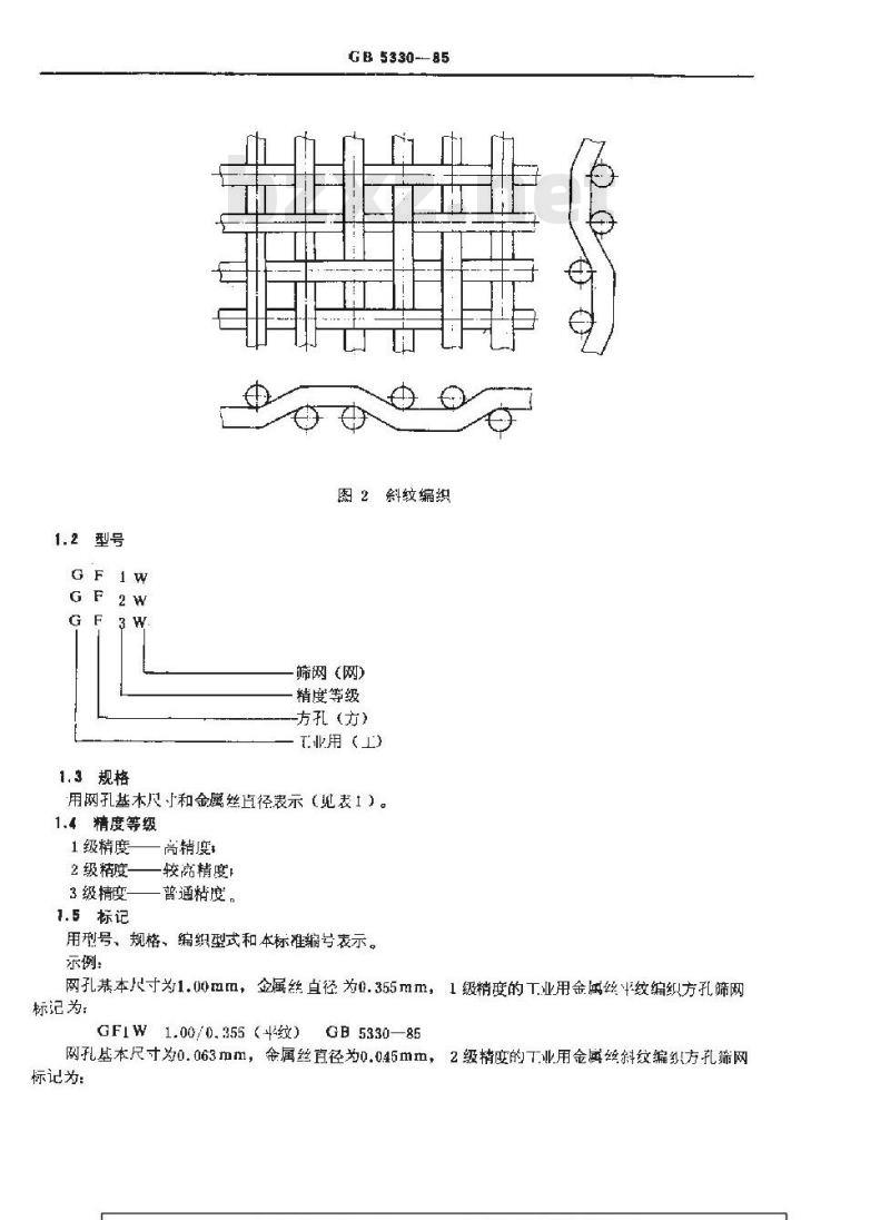 - GB/T 5330-1985 工业用金属丝编织方孔筛网