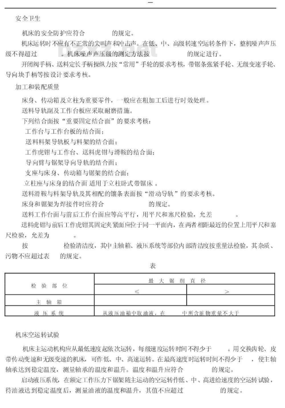 注:最大锯削主分力和最大功率均指设计规定的最大值。在负荷试验时,机床所有机构均应工作正常,安全可靠。表