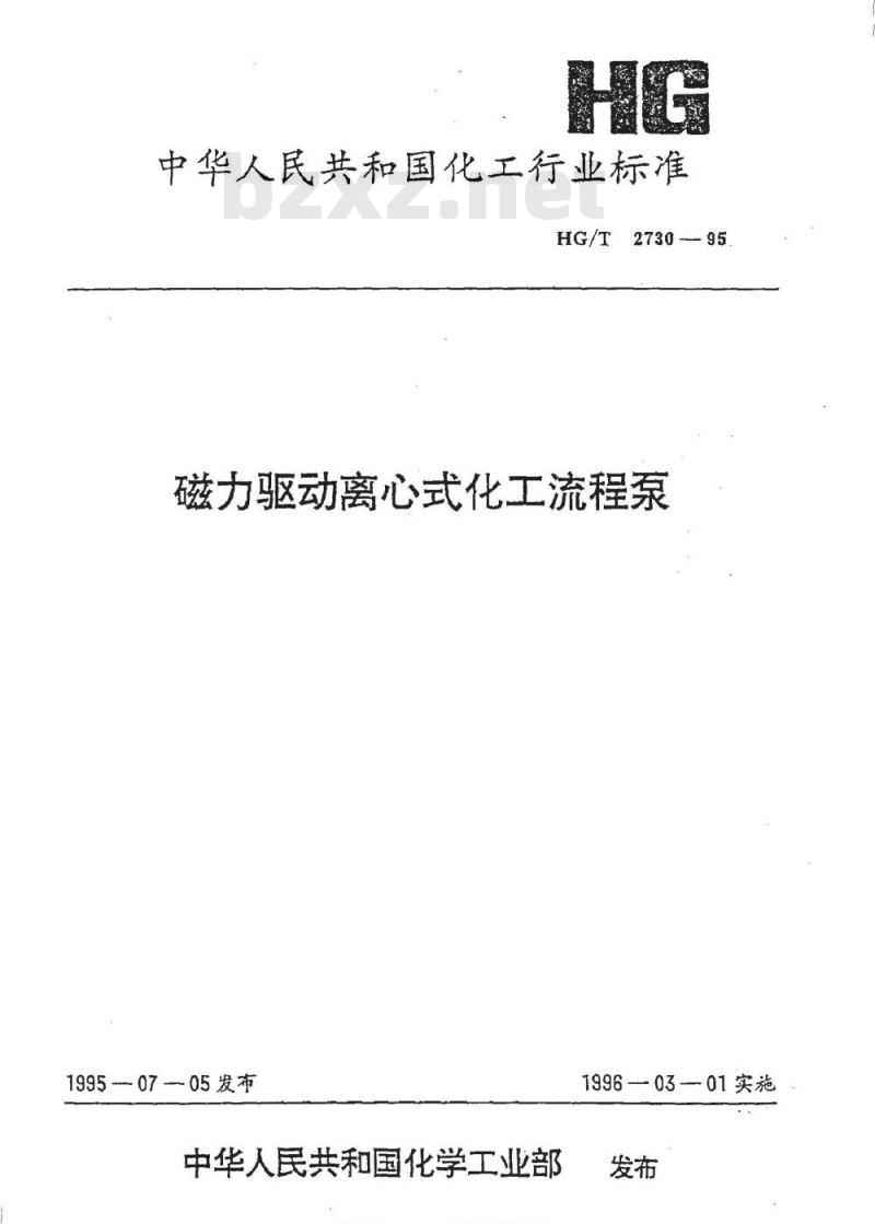 - HG/T 2730-1995 磁力驱动离心式化工流程泵
