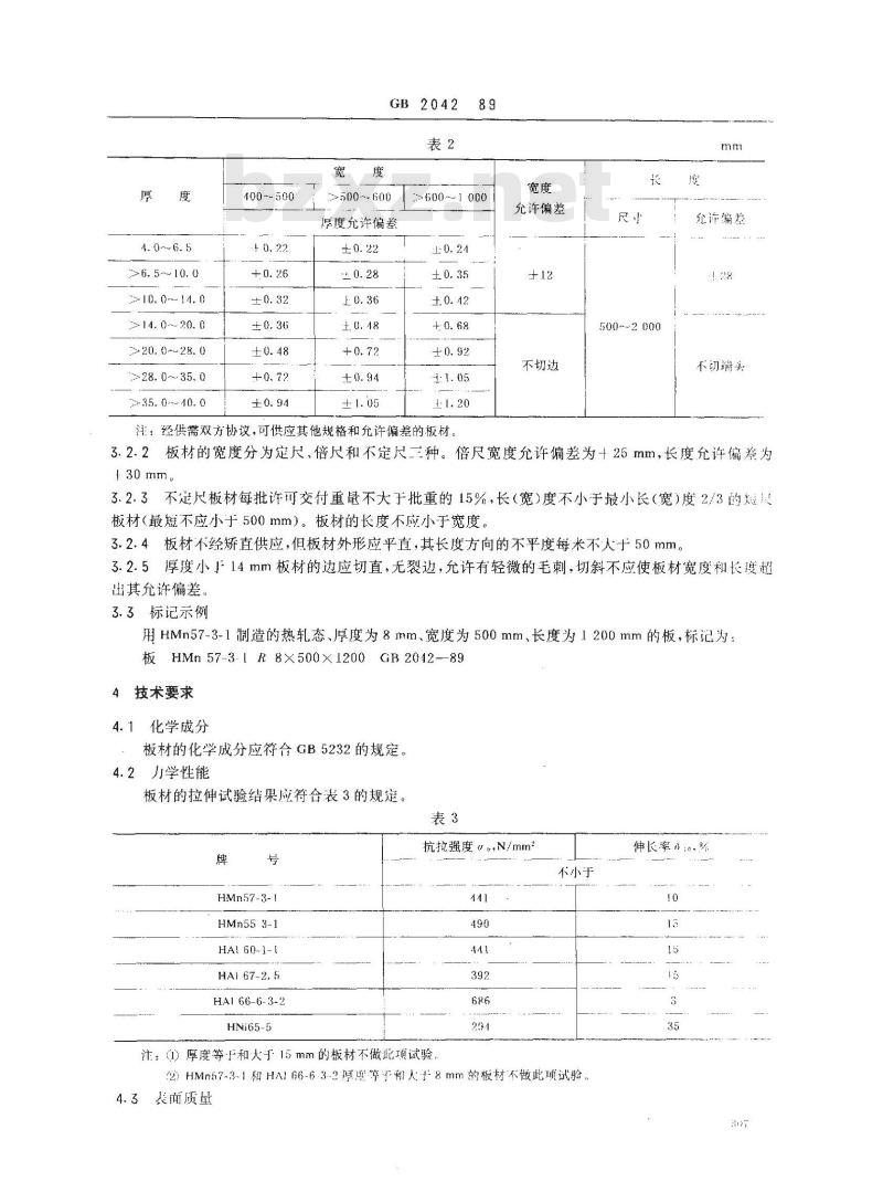 3.2.1板材的尺寸及充许编差应符合表2的规定。中国有色金属工业总公司1989-02-23批准306