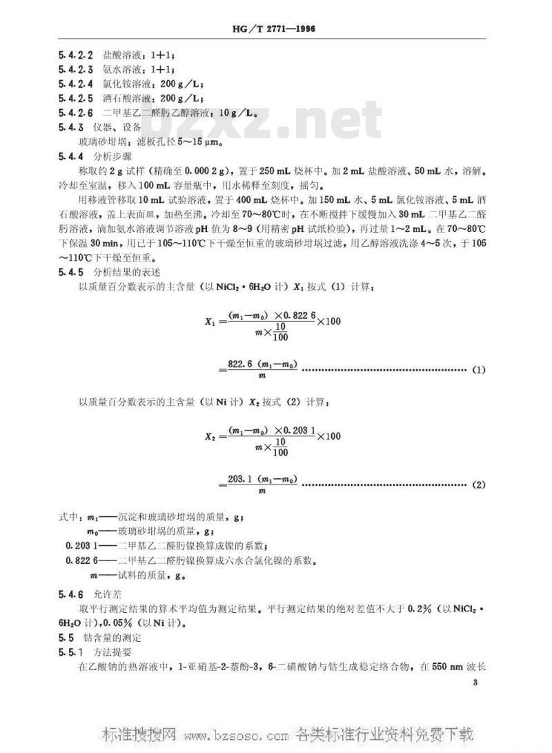 1主含量指标不仅按德国标准规定了以Ni计的指标,且规定了国内习惯的以NiCl2·6H2O计指标。2本标准规定了水不溶物含量指标,而德国标准中规定了0.1N硫酸中不溶物含量指标,二者在本质上是一致的。