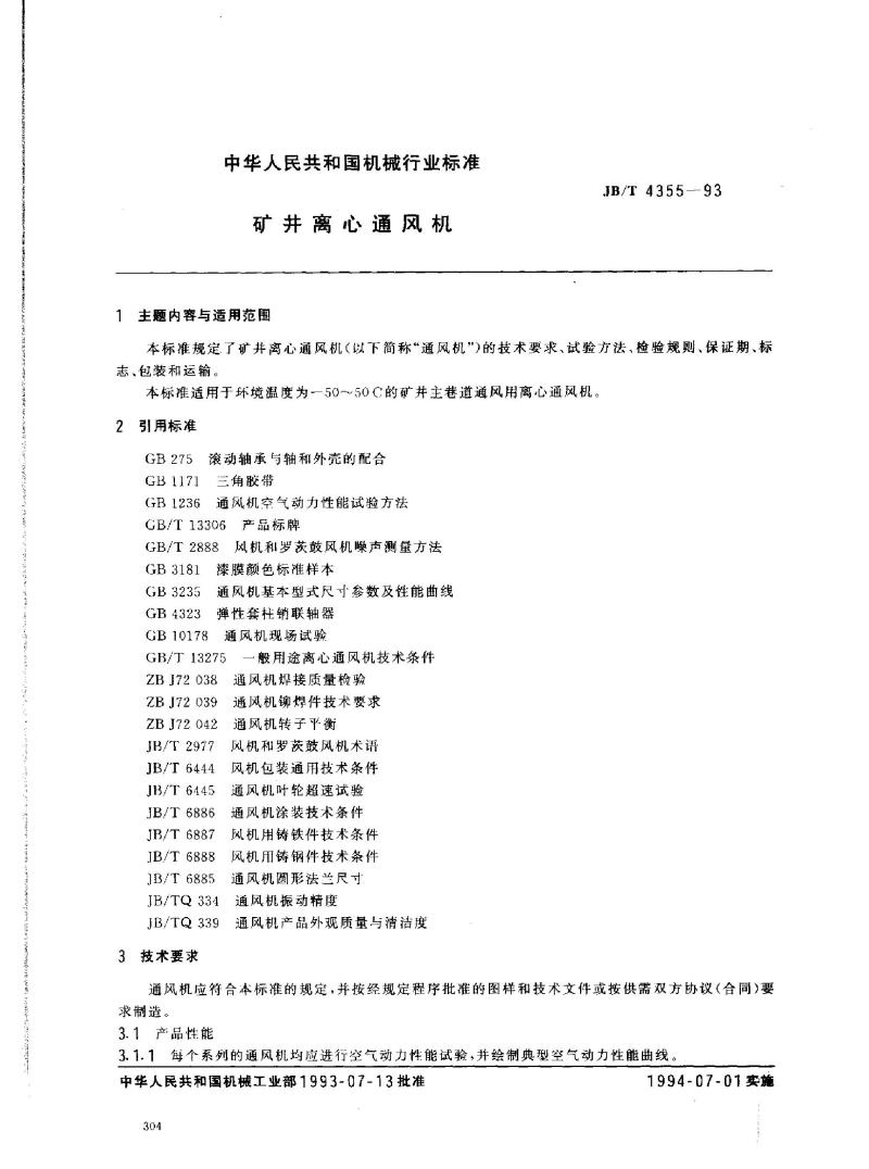 3.1.1每个系列的通风机均应进行空气动力性能试验,并绘制典型空气动力性能曲线中华人民共和国机械工业部1993-07-13批准304