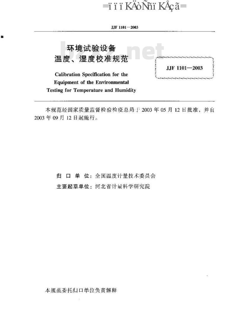 - JJF 1101-2003 环境试验设备温度、湿度校准规范