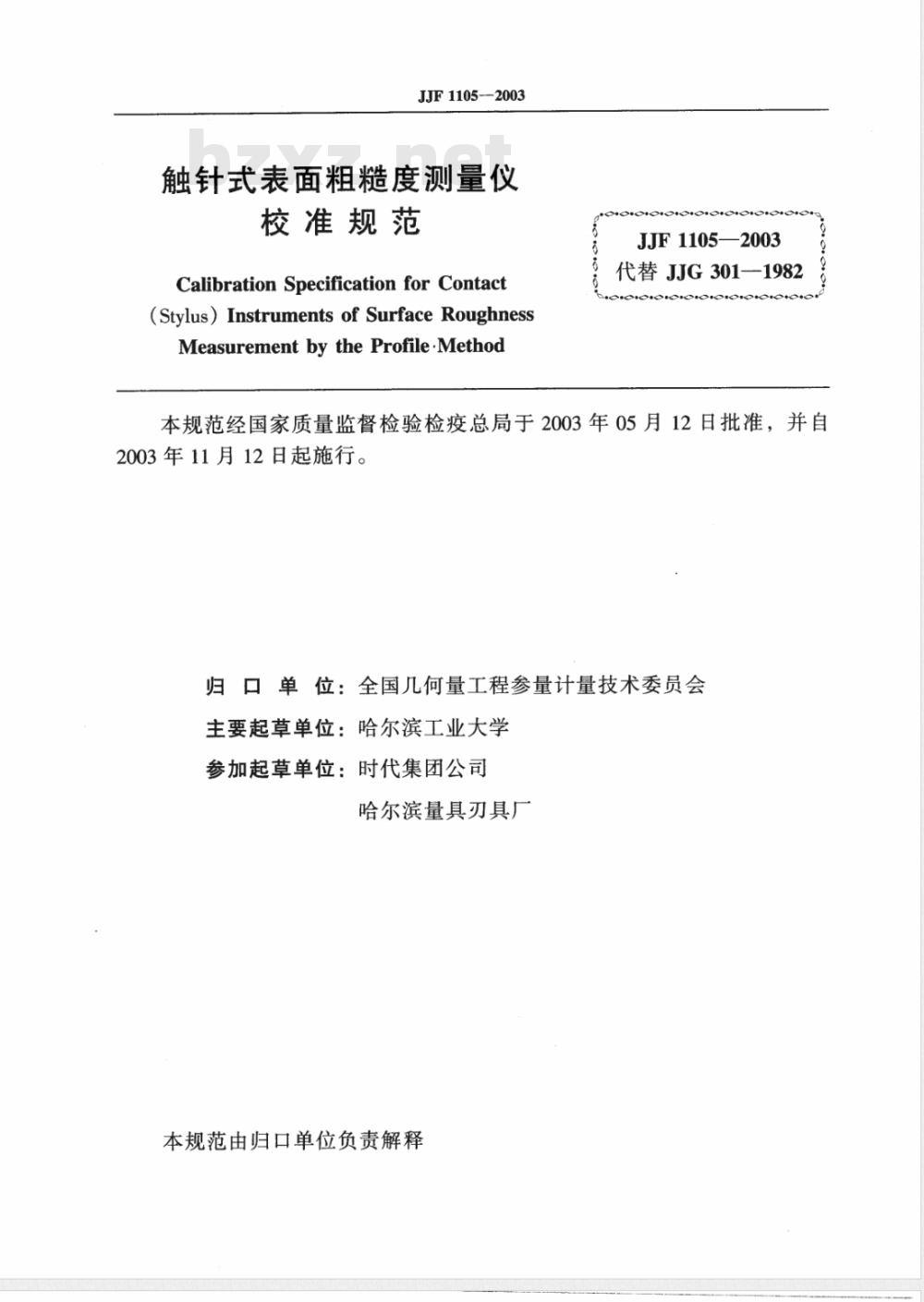 - JJF 1105-2003 触针式表面粗糙度测量仪校准规范