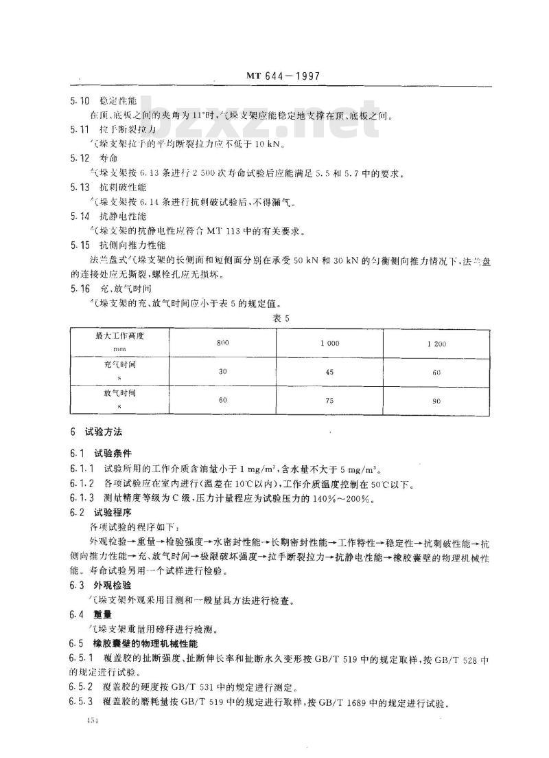 本标准规定了气垛支架的产品分类、技术要求、试验方法、检验规则及包装、贮存、运输。本标准适用于煤矿井h采煤工作面支护及其他临时支护用气垛支架。 MT 644-1997 气垛支架 MT644-1997