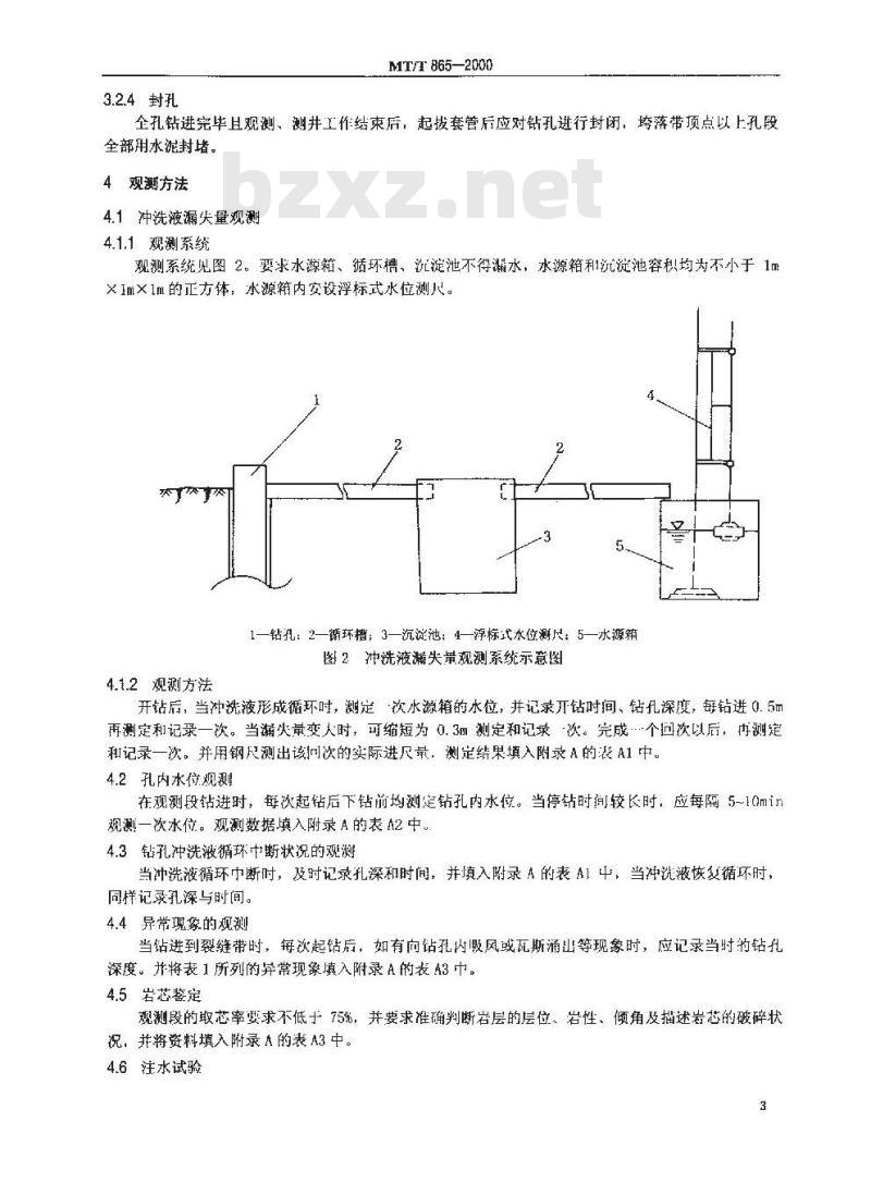 本标准适用于煤矿采空区上方通过钻孔冲洗液漏失量观测方法测定覆岩导水裂缝带的高度。2观测项目及仪器