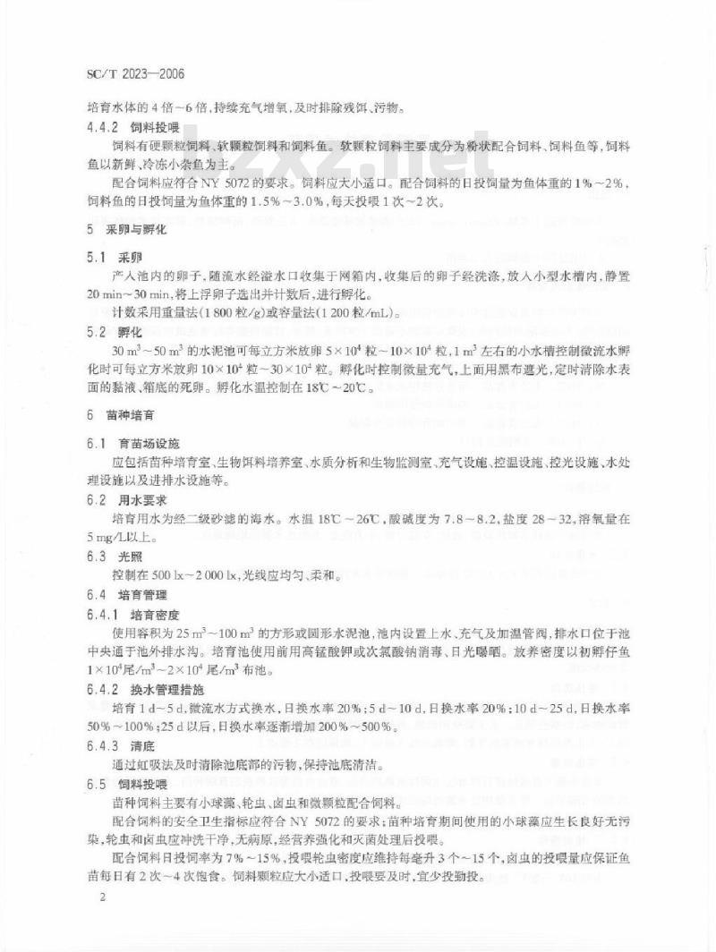 本标准规定了真鲷养殖的环境条件、人工繁殖、苗种培育、养成技术和病害防治技术。本标准适用于真鲷的人工养殖。 SC/T 2023-2006 真鲷养殖技术规范 SC/T2023-2006