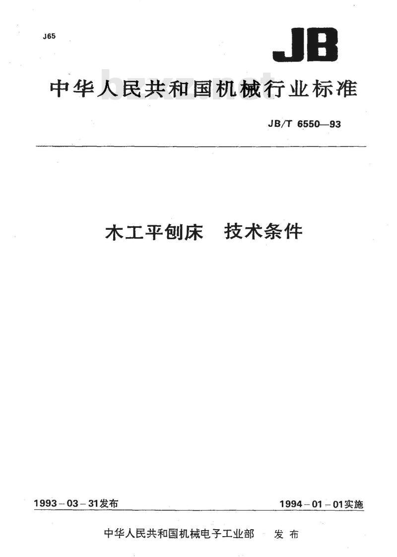 本标准规定了木工平刨床设计、制造和验收的基本要求。 JB/T 6550-1993 木工平刨床 技术条件 JB/T6550-1993