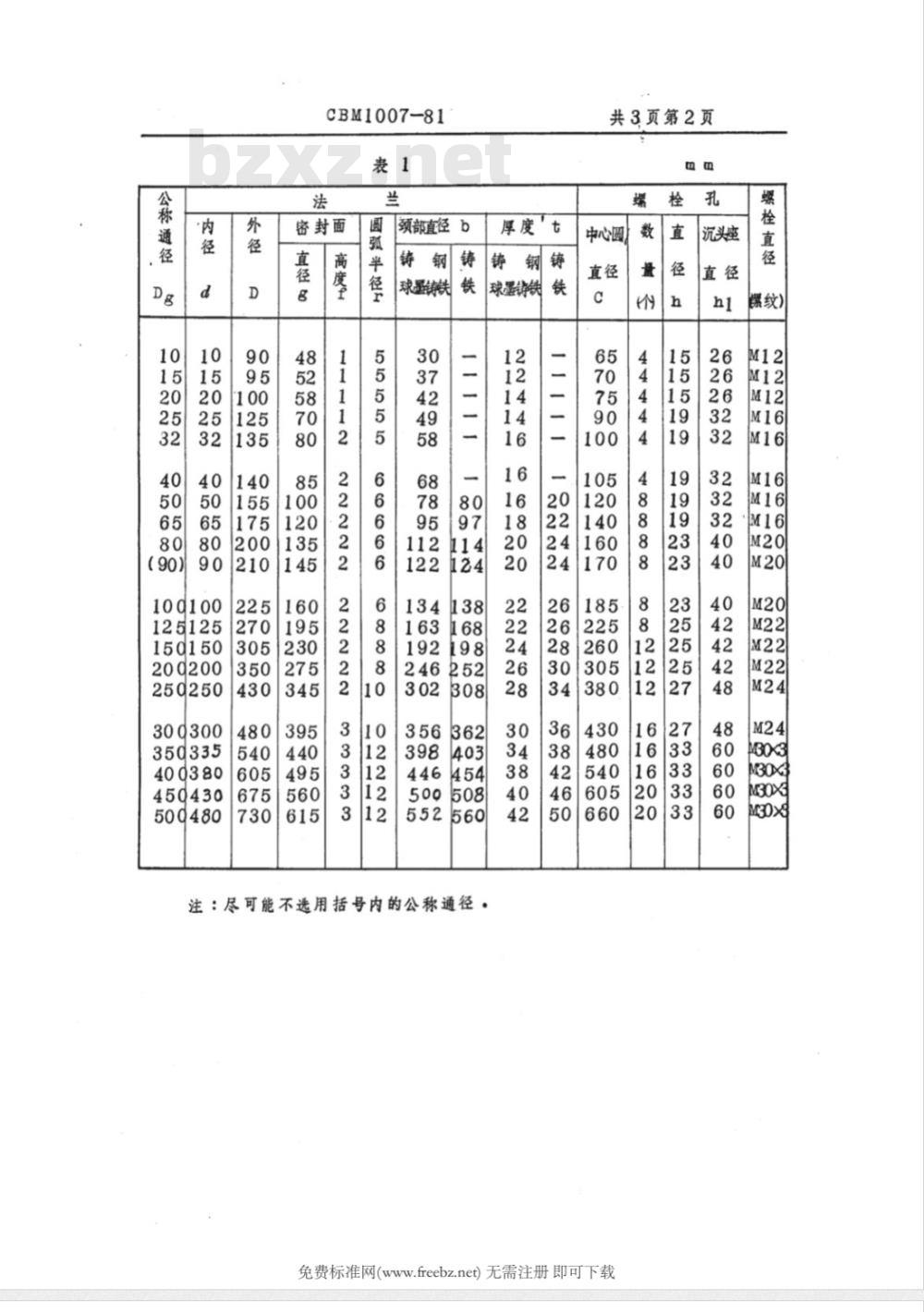 - CBM 1007-1981 16kgf/cm2铸铁、铸钢法兰