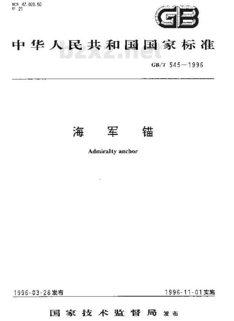 - GB/T 545-1996 海军锚