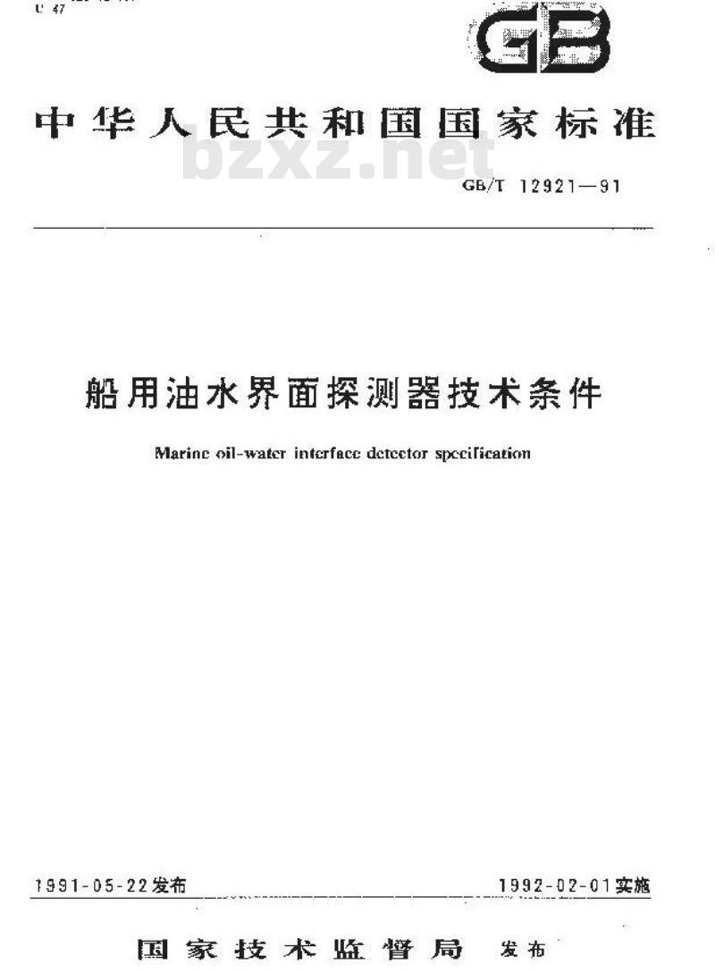 - GB/T 12921-1991 船用油水界面探测器技术条件