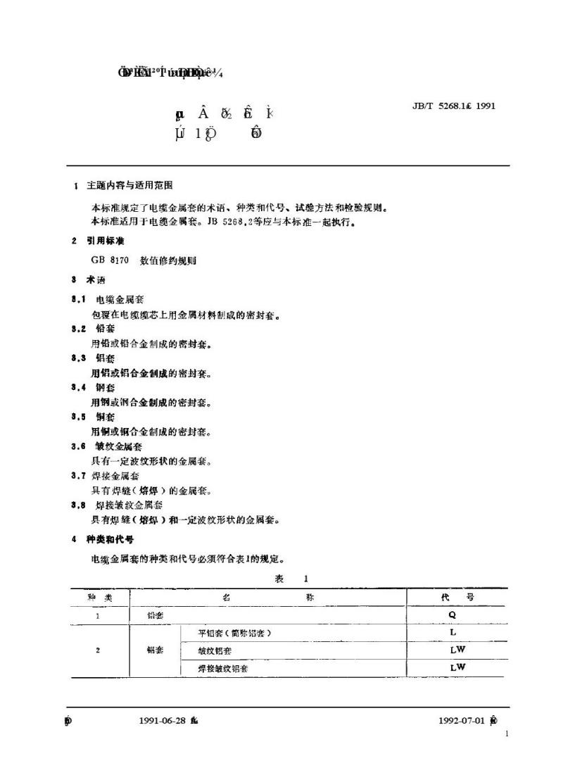 - JB/T 5268.1-1991 电缆金属套 第1部分 总则