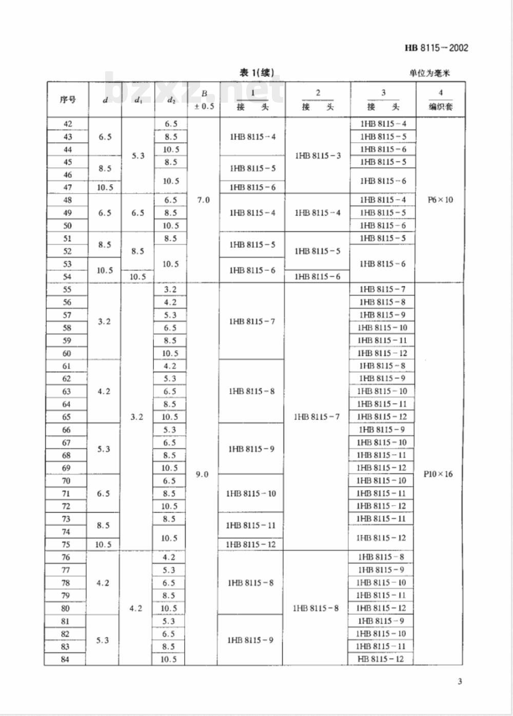 Lz的,L;≤L时,编织套长度每改变20nm,搭接线的重量应对表中数值做相应的增加或减少。编织套P6×10变化值为0.00007kg,P10×16变化值为0.00012kg,P16×24变化值为0.00028kg。