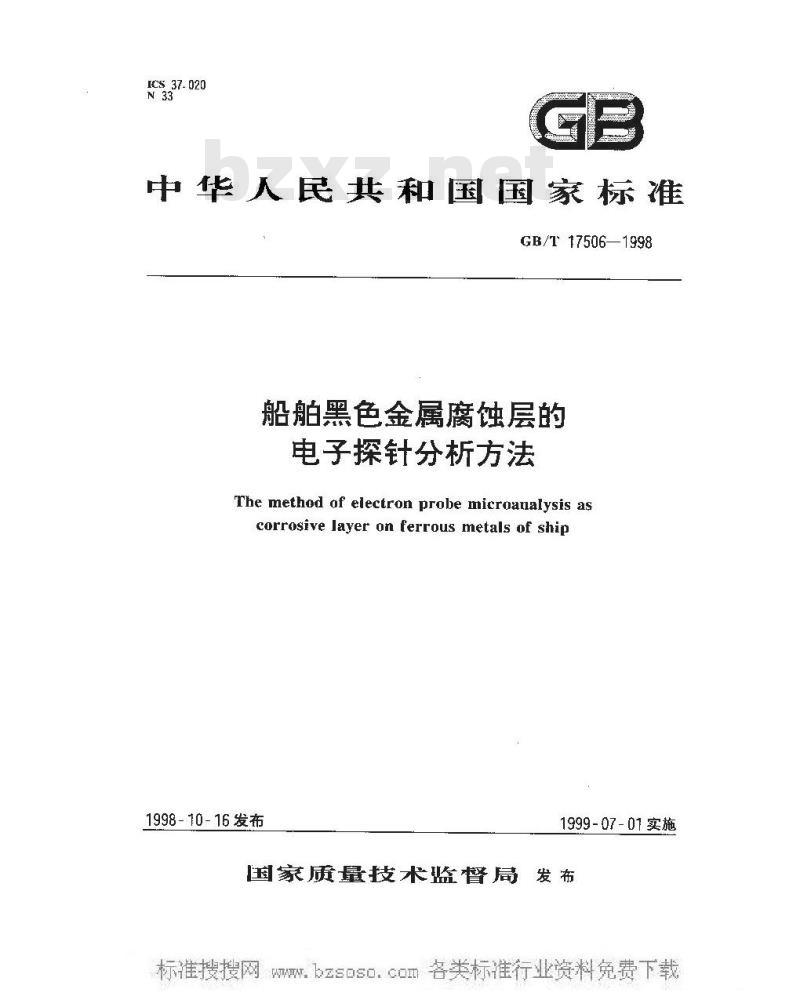 - GB/T 17506-1998 船舶黑色金属腐蚀层的电子探针分析方法
