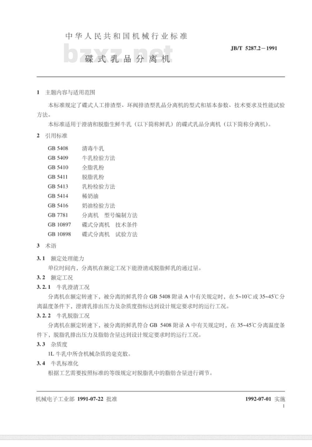 被JB/T 8103.3-2005代替 JB/T 5287.2-1991 碟式乳品分离机 JB/T5287.2-1991