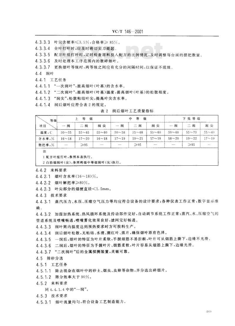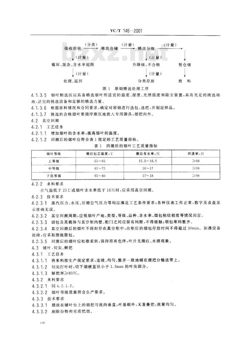 在气温低于25C或烟叶含水率低于16%时,应采用真空回潮。4.2.3技术要求