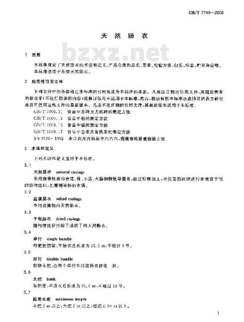 - GB/T 7740-2006 天然肠衣