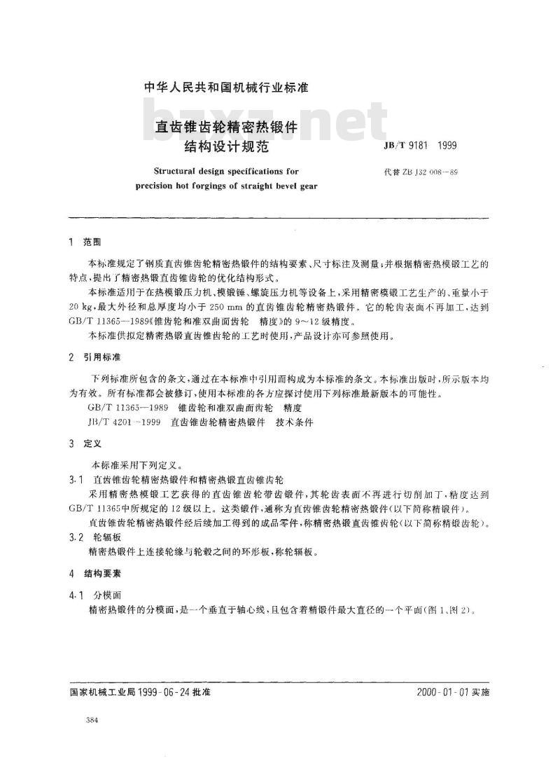 - JB/T 9181-1999 直齿锥齿轮精密热锻件 结构设计规范