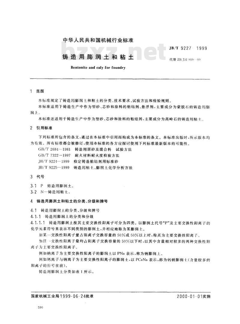 - JB/T 9227-1999 铸造用膨润土和粘土
