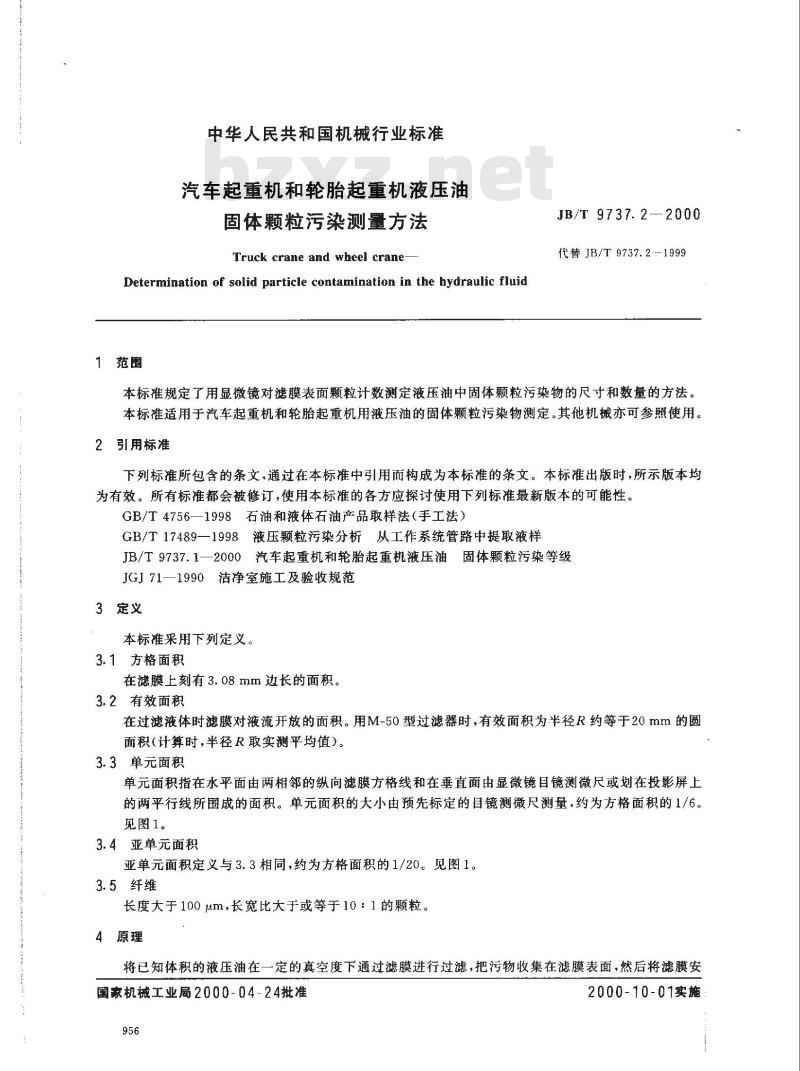 将已知体积的液压油在一定的真空度下通过滤膜进行过滤,把污物收集在滤膜表面,然后将滤膜安国家机械工业局2000-04-24批准956