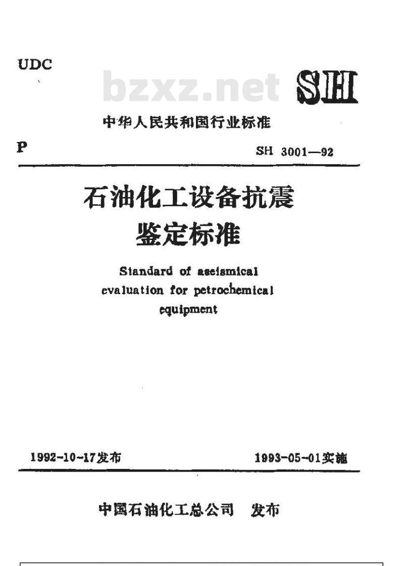 - SH 3001-1992 石油化工设备抗震鉴定标准