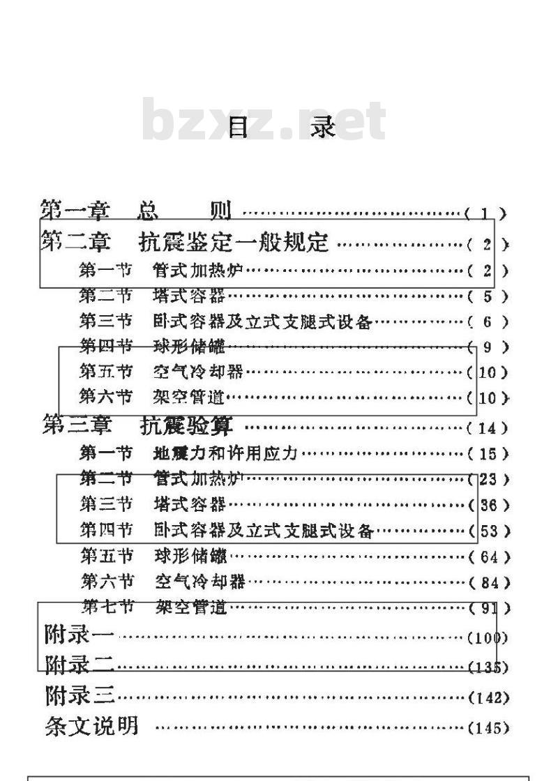 在修订扩充过程中,参照中国石油化工总公司抗震办公室颁布的有关设备抗鉴定规定,并结合石油化工企业设备抗霆竣工验收,进行比较广泛的调套研究,总结了多年来石油化工企业设备抗经验,并征求了有关设计、生产、施工科研等方面的意见,对其中主要问题,进行了多次讨论,最后经第查定稿。
