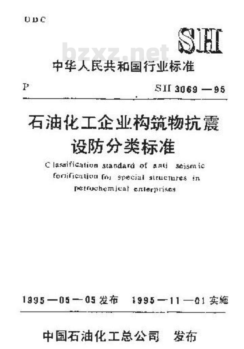 - SH 3069-1995 石油化工企业构筑物抗震设防分类标准