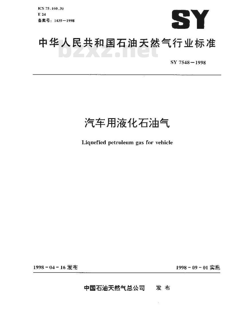 Liquefied petroleum gas for vehicle1998 - 04 - 16 发布