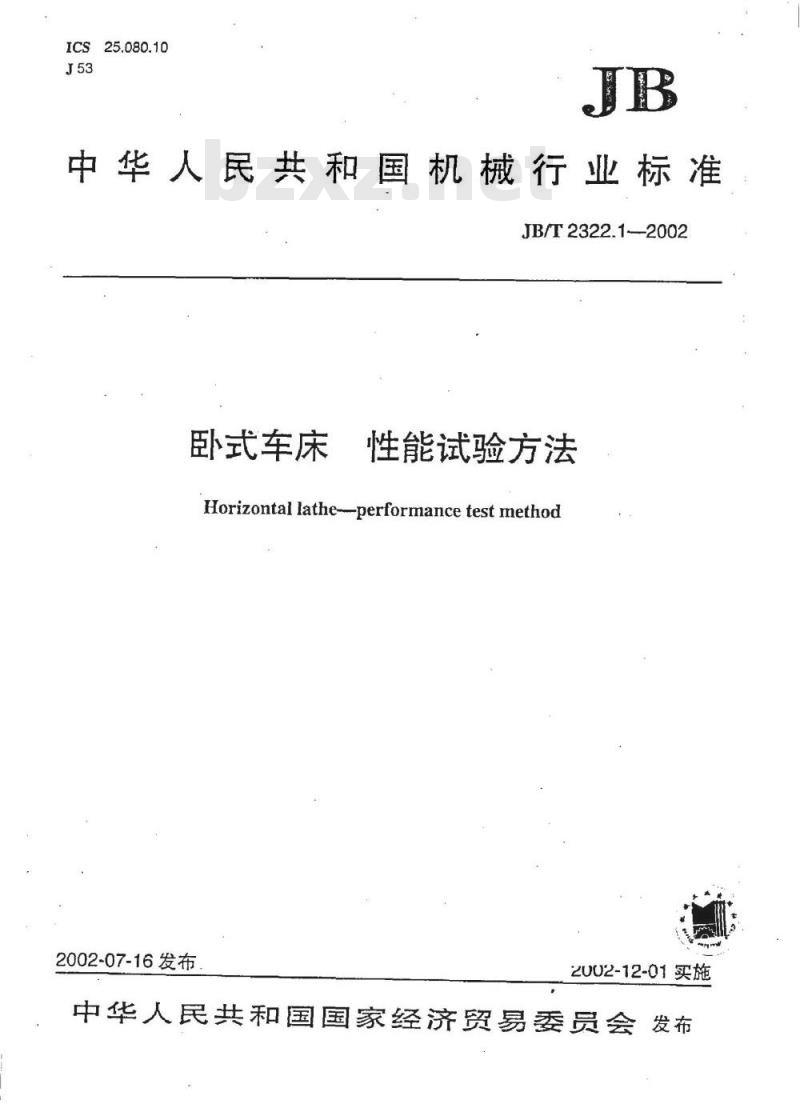 - JB/T 2322.1-2002 卧式车床 性能试验方法