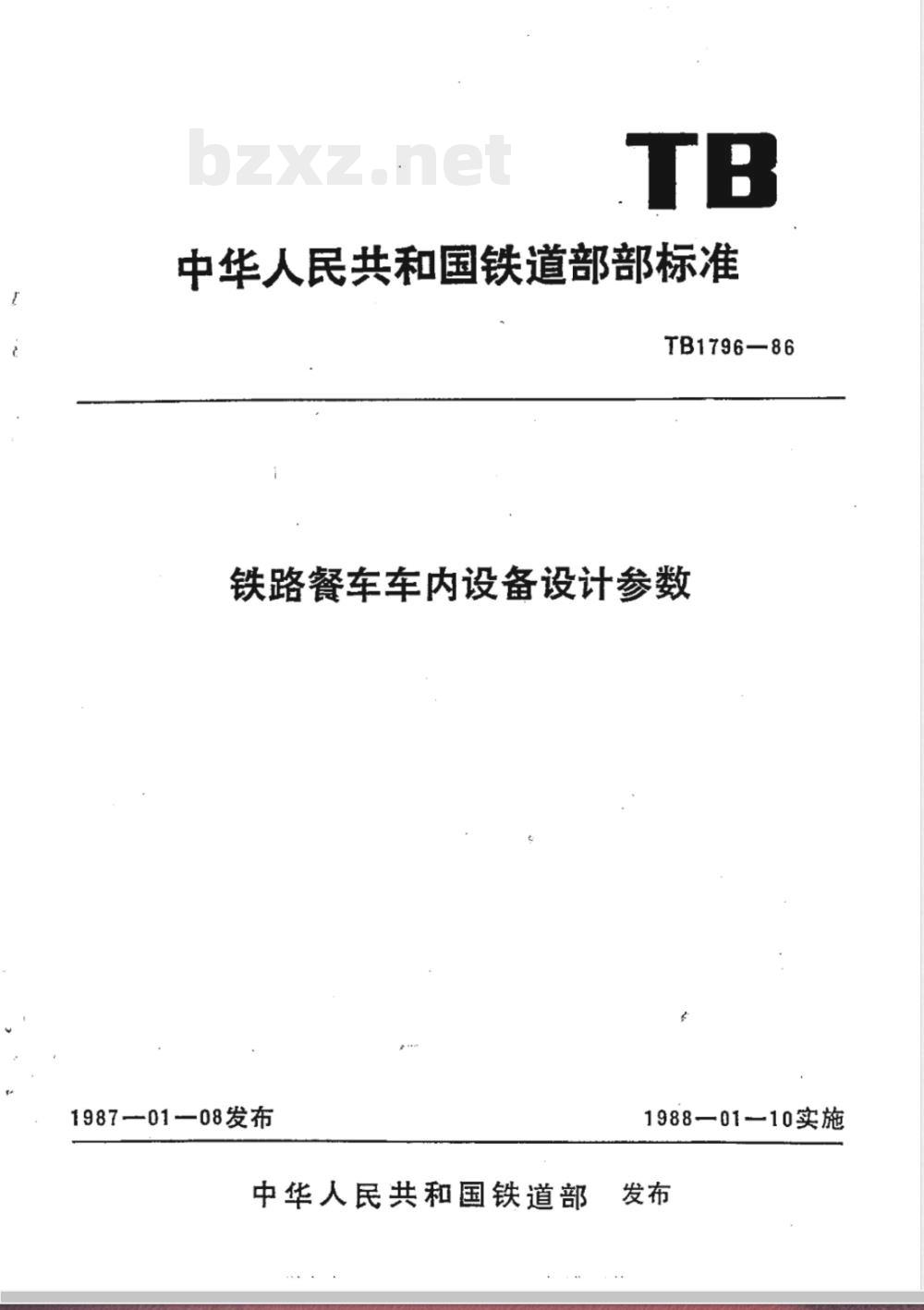 - TB/T 1796-1986 铁路餐车车内设备设计参数
